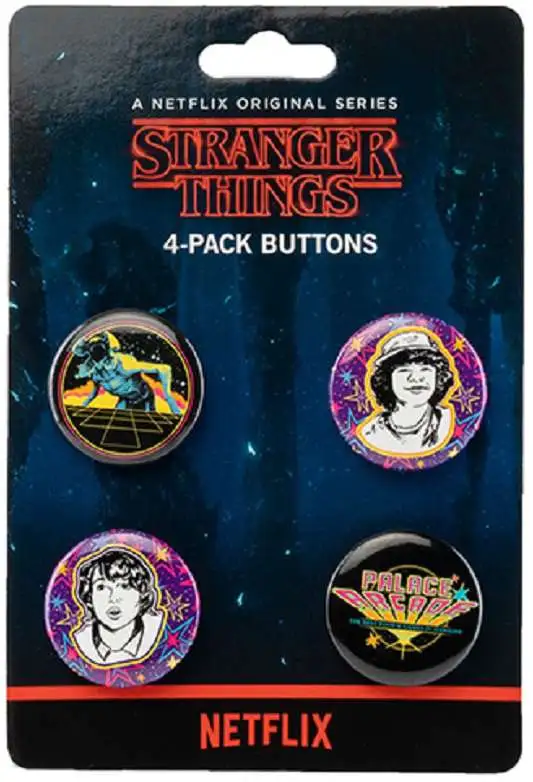 Bring home a piece of The Upside Down with Stranger Things 4PK Palace Arcade Button Set.