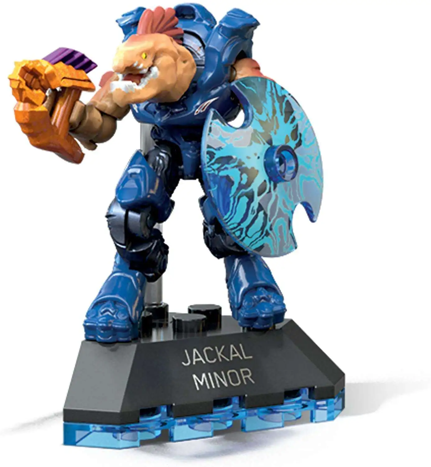 Shield in hand, a Jackal stands ready to challenge all foes of the Covenant! Defend the Covenant with a highly collectible, deluxe micro action figure with the detachable armor and an authentic Needler and Energy Shield! Then, pose the figure by a clear rod on a buildable display stand with printed name detail. Select your favorite hero or collect all 6 figures to lead your forces to victory!