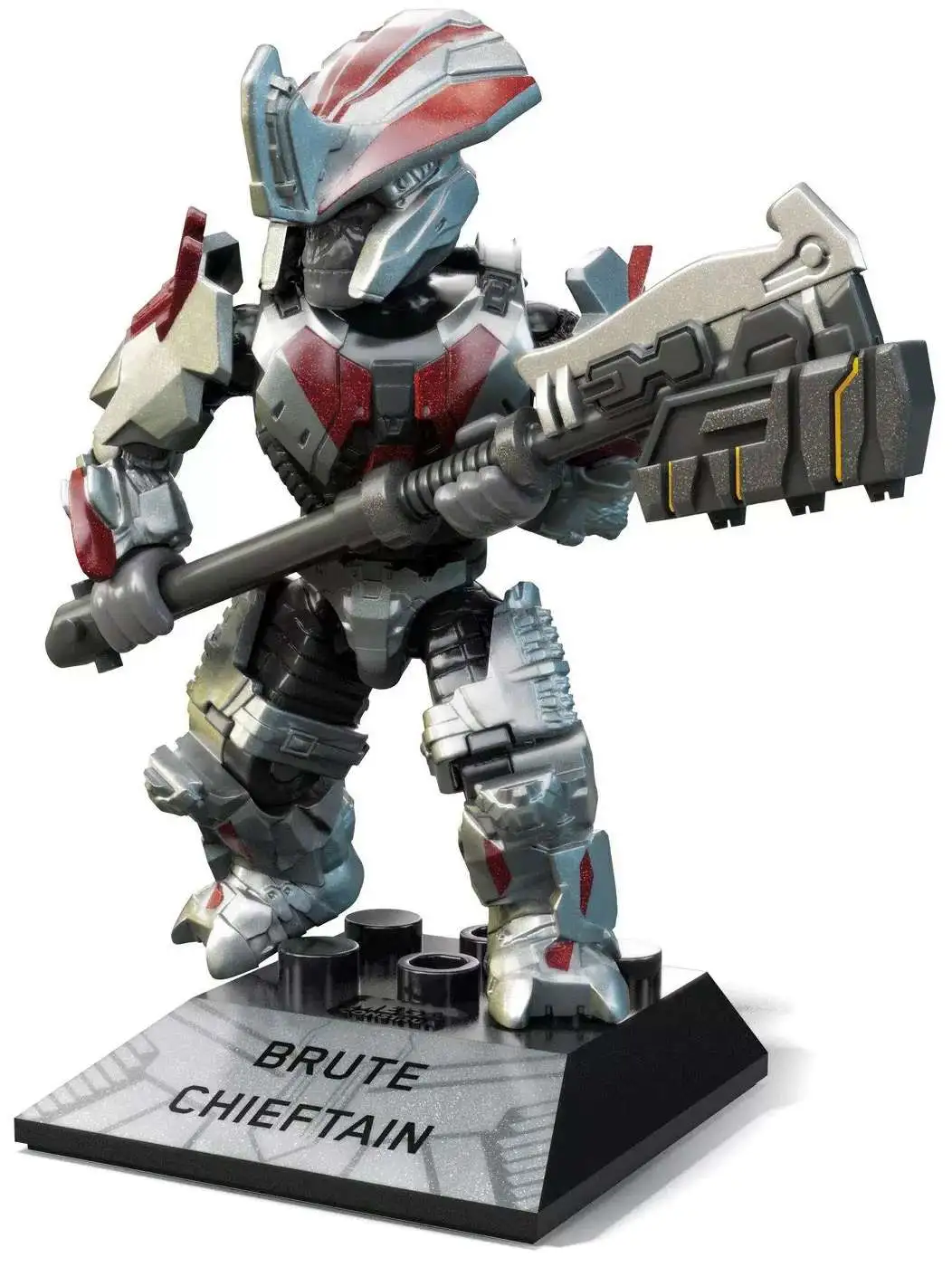 Designed as they appear in Halo Infinite, this Brute Chieftain micro action figure is equipped for battle. Suit up with authentic detail, premium decoration, weapon accessory and detachable, interchangeable armor. Take position on the battlefield when you build the deluxe display stand with printed name detail. Build all 5 and prepare your collection for the challenges ahead.