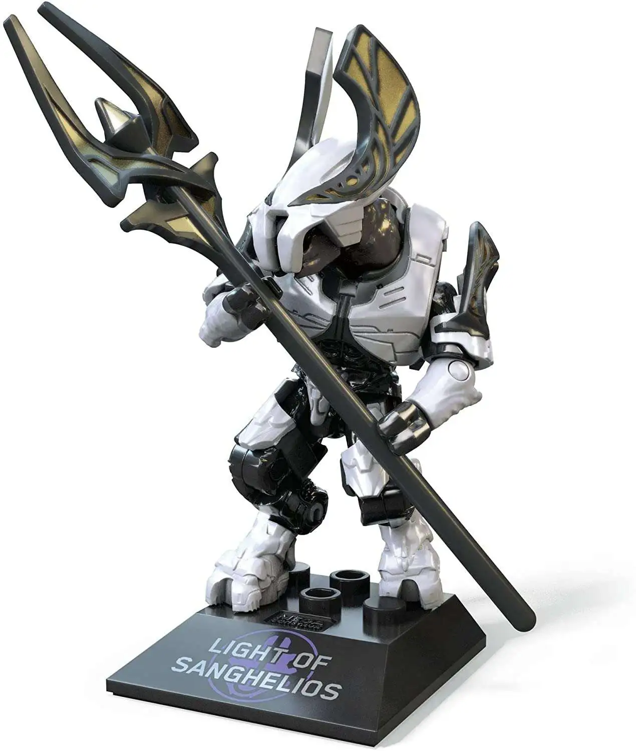 Designed as it appears in Halo Infinite, this Light of Sanghelios micro action figure is equipped for battle. Suit up with authentic detail, premium decoration, a combat accessory and detachable, swappable armor. Take position on the battlefield when you build the deluxe display stand with printed name detail. Build all 5 Series XV Heroes and prepare your collection for the challenges ahead.
