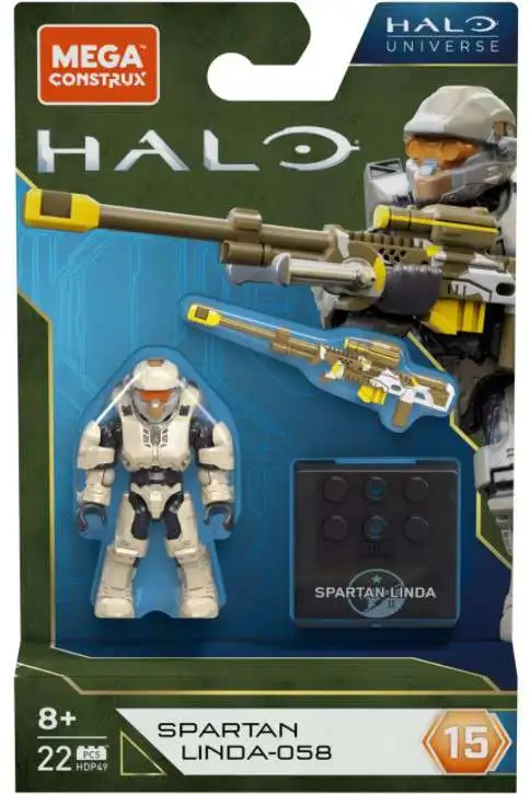 Designed as she appears in Halo Infinite, this Spartan Linda-058 micro action figure is equipped for battle. Suit up with authentic detail, premium decoration, a combat accessory and detachable, swappable armor. Take position on the battlefield when you build the deluxe display stand with printed name detail. Build all 5 Series XV Heroes and prepare your collection for the challenges ahead.