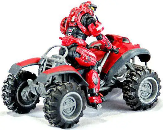 The Mongoose ultra light all-terrain vehicle, first introduced in Halo 3, gets a colorful new upgrade in Halo: Reach. For the first time, the Mongoose can appear in different colors, each representing one of the standard Halo multiplayer teams. For this set, we’ve chosen classic “Team Red” for both the Mongoose and its Spartan driver. This set includes a red Mongoose and red Spartan with Scout helmet, JFO and Grenadier shoulders, and default chest and knees for optimal riding posability.buy = ‘Y’;