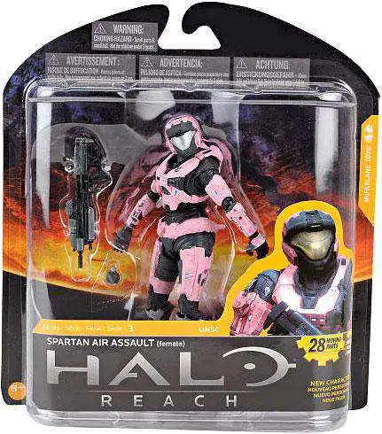 For the first time in Halo multiplayer, Spartans can select not only a female voice, but a female body. Our first multiplayer female Spartan features an Air Assault helmet, FJ/Para kneeguards, and a feminine pink rose color scheme. Figure comes with Assault Rifle and Frag Grenade. Delve into epic action with the Halo Reach Series 3 Female Spartan Air Assault Action Figure from McFarlane Toys. This 5-inch, UNSC-affiliated figure features 28 moving parts and comes complete with a jetpack and weapon.