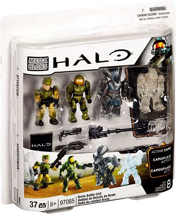 Establish your army, build and expand your units with the Brute Battle Unit by Mega Bloks Halo! The Brute Battle Unit pits a green UNSC Officer and UNSC Spartan in security green against a Brute Chieftain and Brute Stalker in active camo armor. The fight is on!