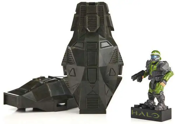 Build the universe with the Metallic Series ODST Drop Pods by Mega Bloks Halo! The Orbital Drop Shock Troopers (ODST) are elite special operations soldiers performing high-risk orbital drop-and-infiltration missions against key Covenant targets across the galaxy. In the seat of his drop pod, the green ODST is equipped with a backpack and Socom Pistol, ready to conduct long range recon and ground surveillance before taking direct action against his target.