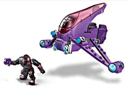 Establish your army, build and expand your units with the Halo Covenant Banshee by Mega Bloks! The Type-26 Ground Support Aircraft also known as the Banshee is the standard ground assault unit in the Covenant military, capable of reaching speeds of over 100 Km/H. As it screeches across alien skies, the highly agile and acrobatic Banshee is armed with twin plasma cannons and fuel rod cannon aimed to wreck havoc on UNSC ground forces. The familiar howl of an approaching Banshee can send even the most courageous UNSC forces scrambling for cover!