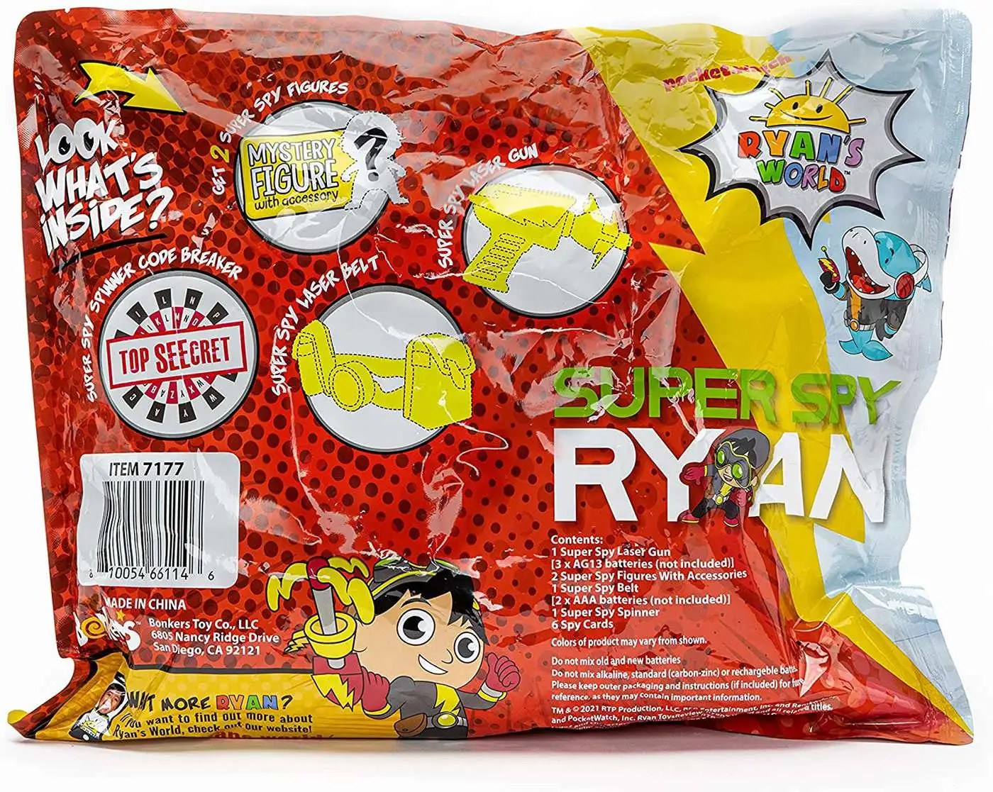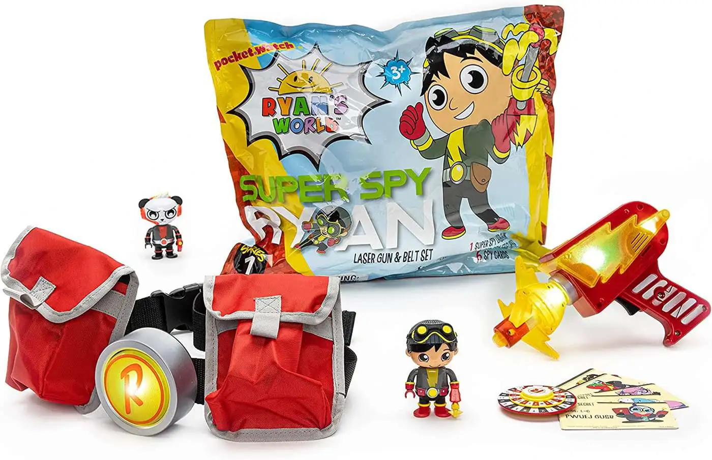Ryans World Super Spy Belt (Amazon Exclusive) Super Spy Ryan is on a mission to maximize the fun! The brand-new Super Spy Belt is the ultimate accessory for Ryans World fans who want to be a secret agent just like Ryan. The wearable, light-up Spy Belt also includes a sound-making laser gun, mystery figures, and even more surprises. Available only on Amazon.com in the US. Based on Ryans World, one of the most popular kids YouTube channels on the planet Contains 2 Super Spy themed mystery figures, a spinner, a laser gun with lights and sounds, spy cards, and the light up spy belt. Amazon.com exclusive Ryans World is one of the most popular kids and family YouTube channels on the planet! Ryans channels have 58+ billion video views, 41+ million subscribers and counting. Bonkers Toys partnered with pocket.watch to create Ryans very first toy line under the brand, Ryans World.