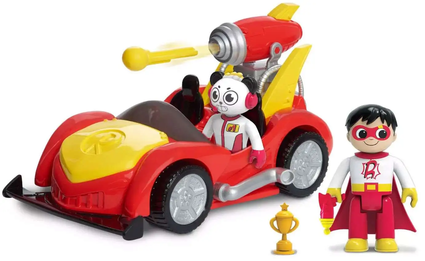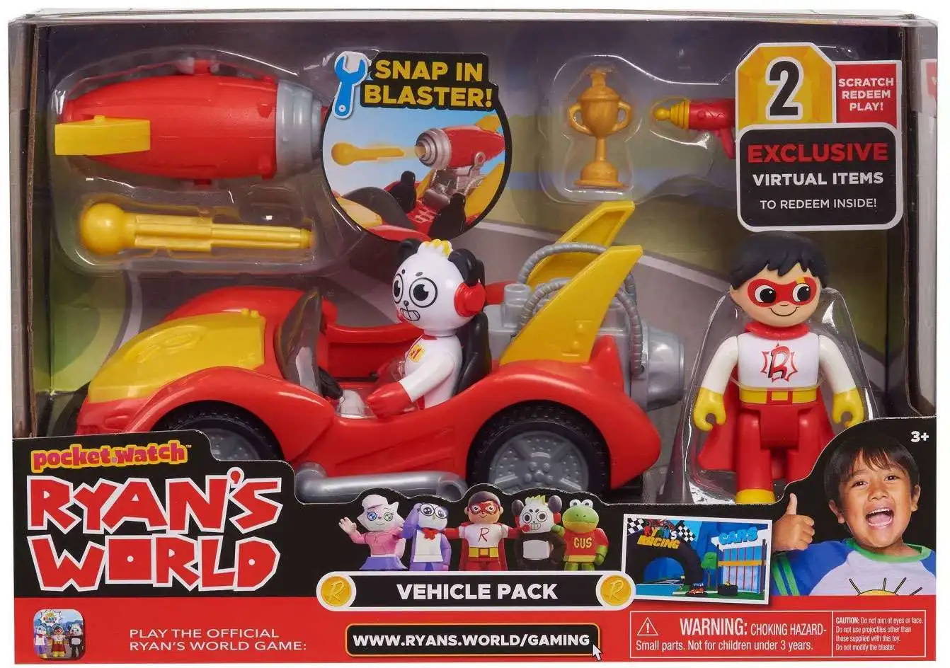 Kids can join the Combo Crew for some epic adventures with the Ryans World Vehicle Set. This 7-piece set includes 1 vehicle, 1 blaster, 1 blaster attachment for the vehicle, 2 racer figures, and 2 accessories. Each vehicle seats 2 figures and features wheels that really move. Race with friends and use the launcher to create obstacles. The figures even feature interchangeable pieces so kids can mix and match them to create their own custom figs! The Ryans World Vehicle Set includes 2 virtual item codes kids that can use to activate virtual items in the Ryans World online video game. The fun and creativity never ends with the surprising and exciting video-game-inspired toys from Ryans World. Bring home the Ryans World Vehicles and the rest of the Ryans World-inspired toys, and let your little fan bring their own imagination to life! Ages 3 and up.
