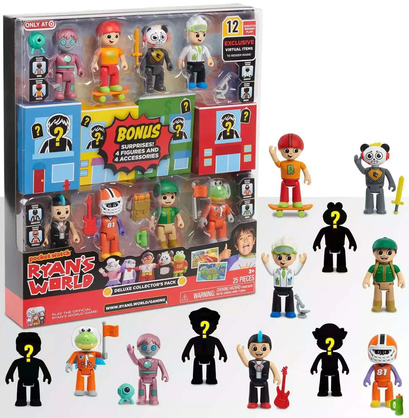 Bring home the imagination of Ryans World with the Ryans World Deluxe Collectors Figure Pack. Each of the 12 figures features an exclusive look and comes with a matching accessory. They even feature interchangeable pieces so kids can mix and match them to create their own custom figs! This 25-piece set includes 4 mystery figures to reveal, and rare collectable figures from the Ryans World gaming universe. The Ryans World Deluxe Collectors Figure Pack also includes 12 virtual item codes that kids can use to activate virtual items in the Ryans World online video game. The fun and creativity never ends with the surprising and exciting video-game-inspired toys from Ryans World. Bring home the Ryans World Deluxe Collectors Figure Pack and the rest of the Ryans World-inspired toys, and let your little fan bring their own imagination to life! Ages 3 and up.