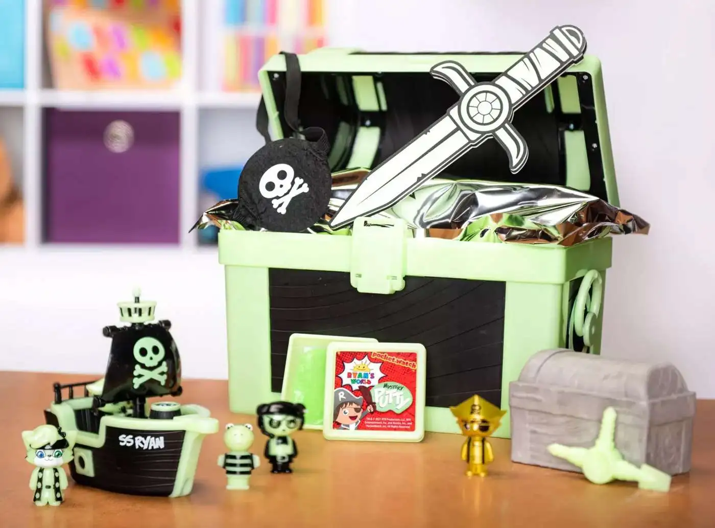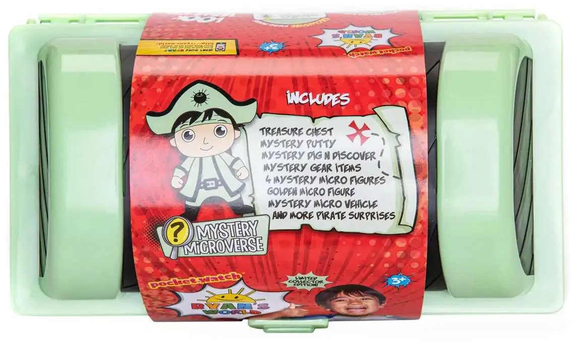 The award-winning Capn Ryans Mystery Treasure Chest is back, but this time micro-sized! Ryans World fans who loved the original chest will be mega excited for this micro version with all-new glow-in-the-dark surprises including micro figures, a micro pirate ship, and putty. Also includes a micro Dig n Discover and pirate gear so kids can be just like Capn Ryan with pirate-themed fun!