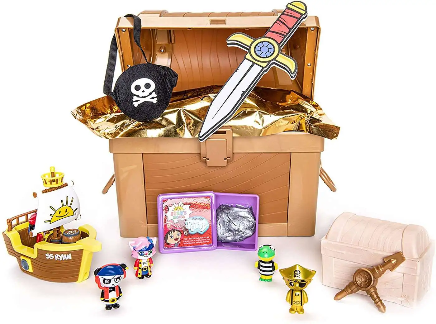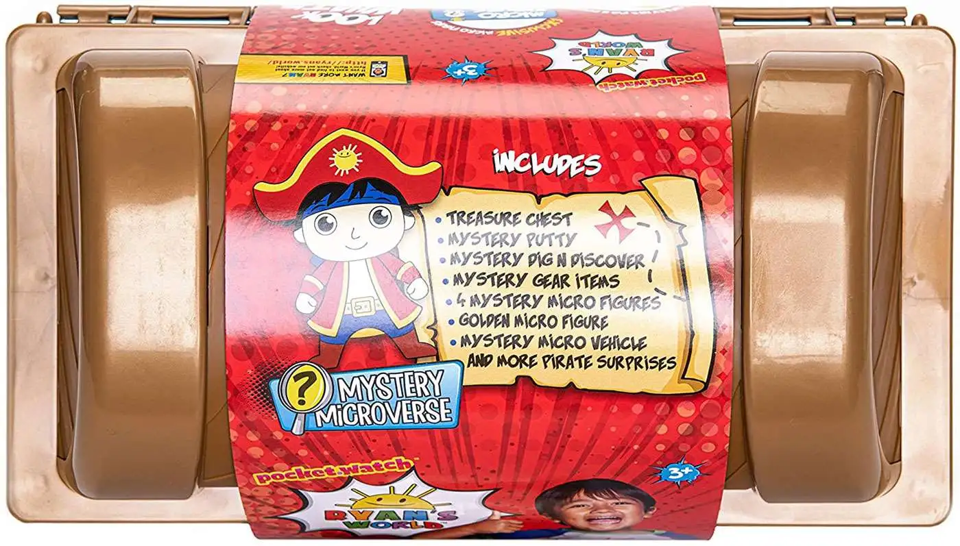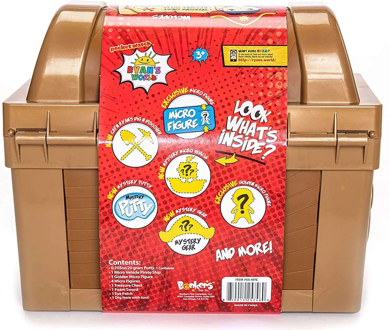 Ryans World Capn Ryans Micro Mystery Treasure Chest The award-winning Capn Ryans Mystery Treasure Chest is back, but this time micro-sized! Ryans World fans who loved the original chest will be mega excited for this micro version with all-new surprises including micro figures, a micro pirate ship, and putty. Also includes a micro Dig n Discover and pirate gear so kids can be just like Capn Ryan with pirate-themed fun! Based on Ryans World, one of the most popular kids YouTube channel on the planet Contents include micro chest, small foam sword, micro putty, keys, eyepatch, Micro Dign Discover, 5 micro figures, and a micro pirate ship.