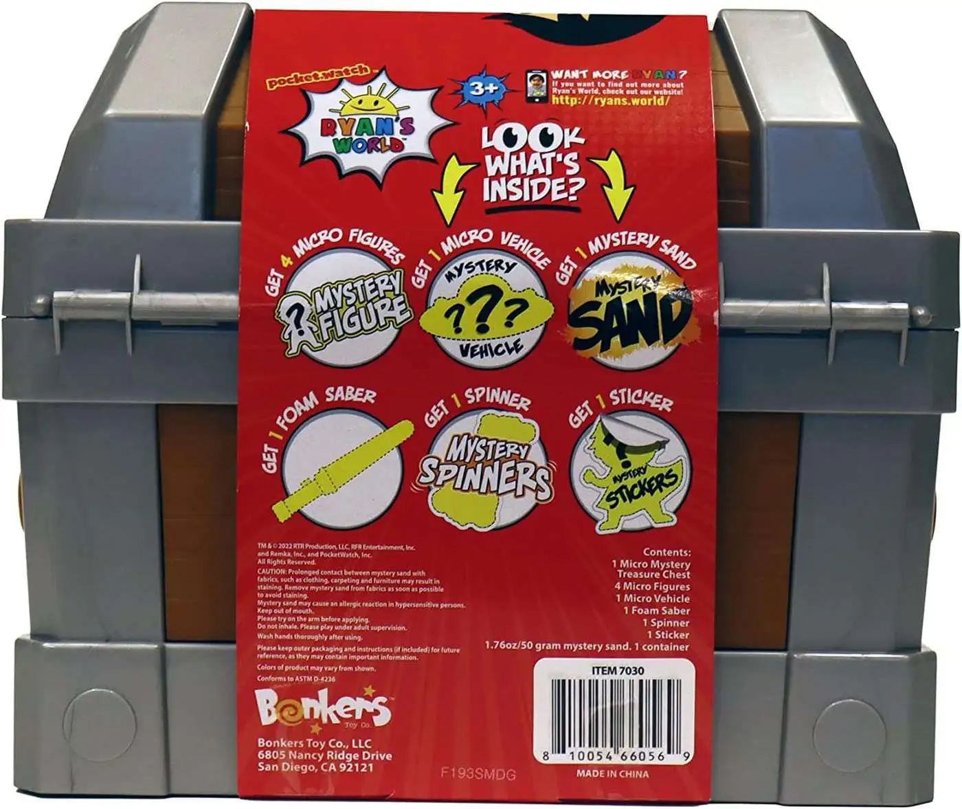Includes: 1 Micro Mystery Treasure Chest, 4 Micro Figures, 1 Micro Vehicle, 1 Mystery Sand, 1 Foam Saber, 1 Spinner & 1 Sticker.
