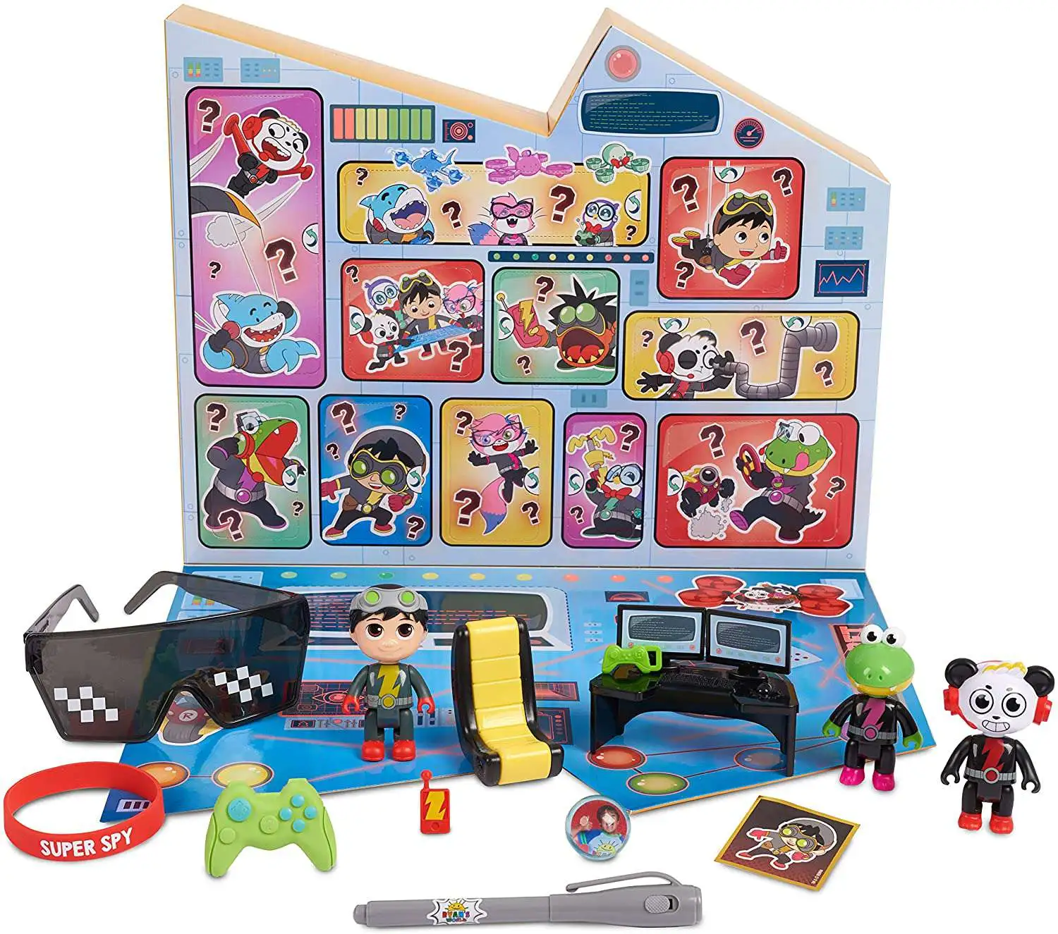 Investigate and discover the super spy surprises hidden within the Ryans World Golden Console, featured in Super Spy Ryan. Kids will love to peel and reveal each of the 13 surprises including three spy figures, two figure accessories, a UV spy pen, a controller eraser, a bouncy ball, a spy chair, a spy computer console, a super gamer bracelet, glasses, and a metallic sticker. Become the ultimate secret agent and use the spy UV pen to uncover secret images on the box. Let your little fan bring their imagination to life with the Ryan’s World Golden Console and the rest of the Ryan’s World inspired toys! Ages 3+