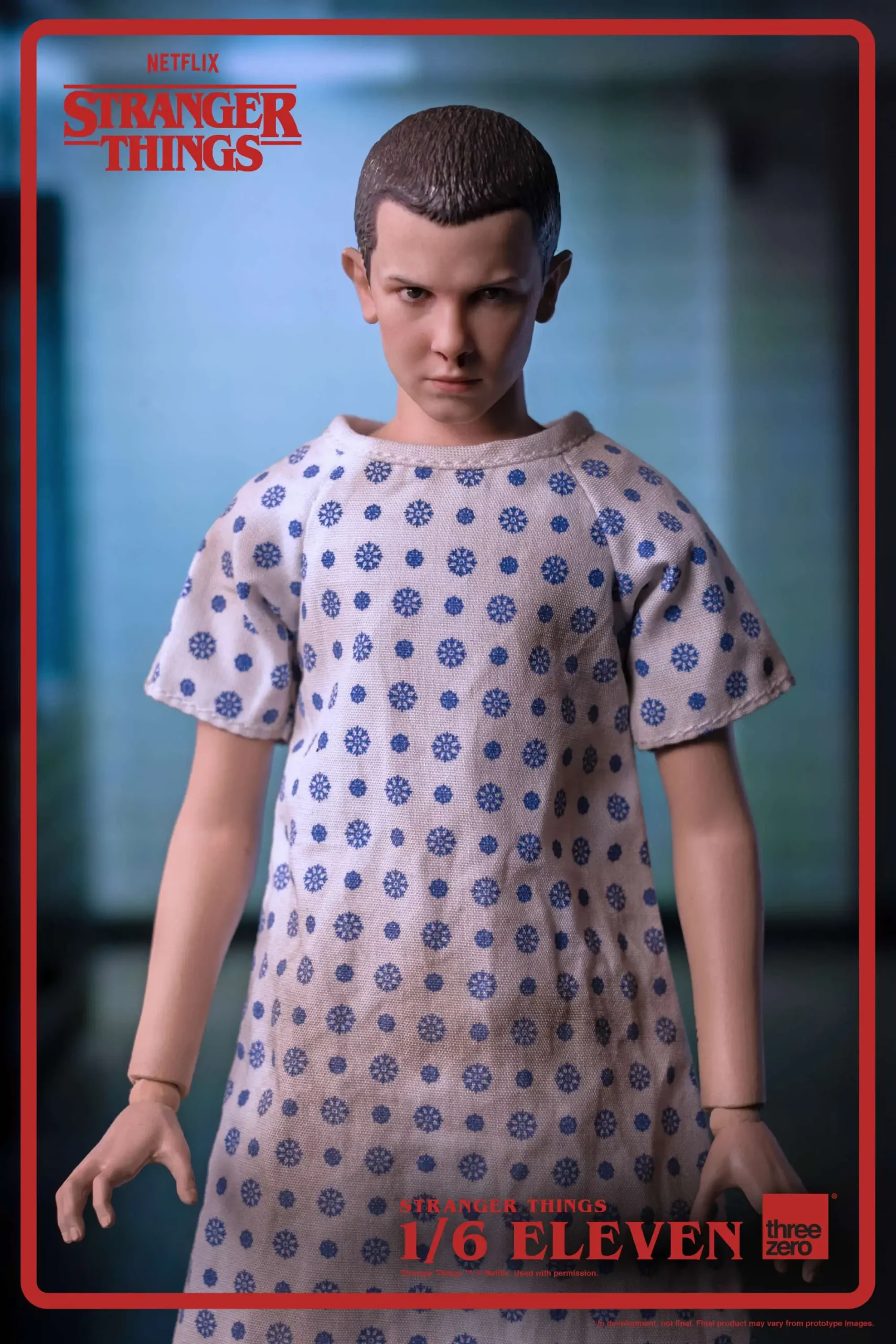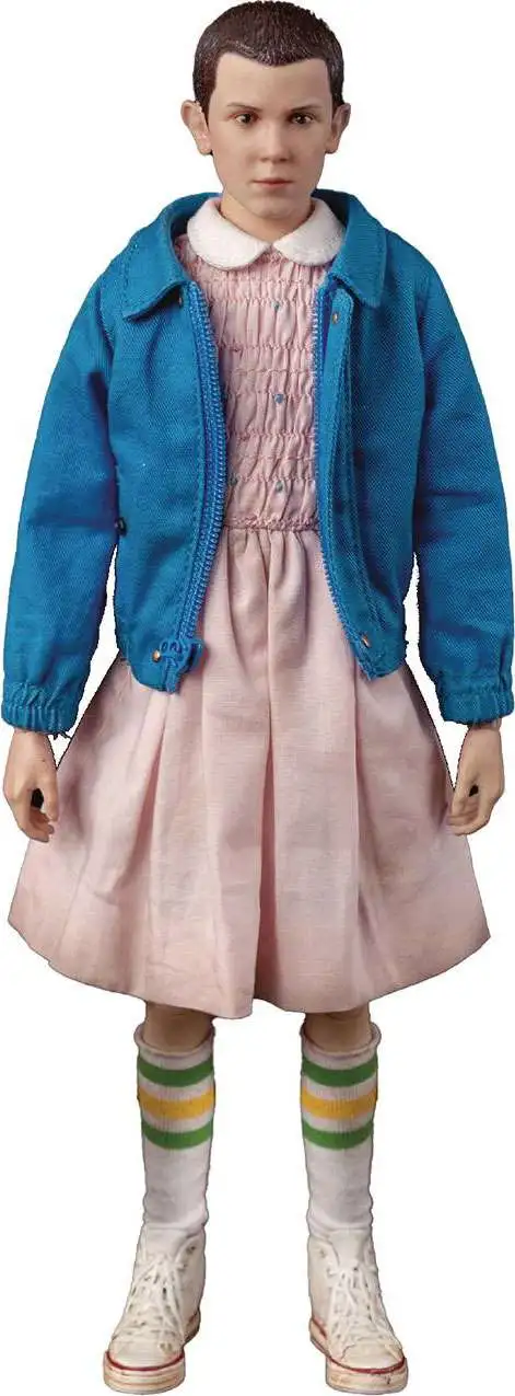 At a young age, Eleven was kidnapped and raised in the mysterious Hawkins National Laboratory, where she was experimented on for her psychokinetic abilities. After escaping from the lab, Eleven was found by Mike, Lucas and Dustin, who discover she may be connected to the disappearance of their missing friend. The Stranger Things – 1/6 Eleven collectible figure stands approximately 9.2 inches (~23cm) tall and features a fully-articulated original body with 28 points of articulation and fabric clothing. The highly-detailed figure includes two different head sculpts with an authentic likeness to the character’s appearance in Season 1 of the hit Netflix series Stranger Things. Accessories include a watch, two waffles, and five pairs of interchangeable hands. Final product may vary from prototype images.